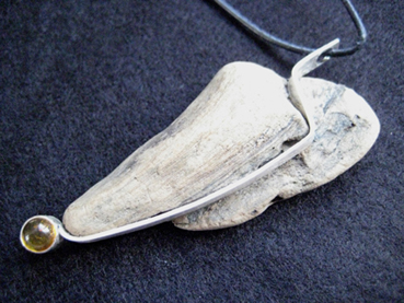 Anhänger Holz / Silber 925/000 Bernstein